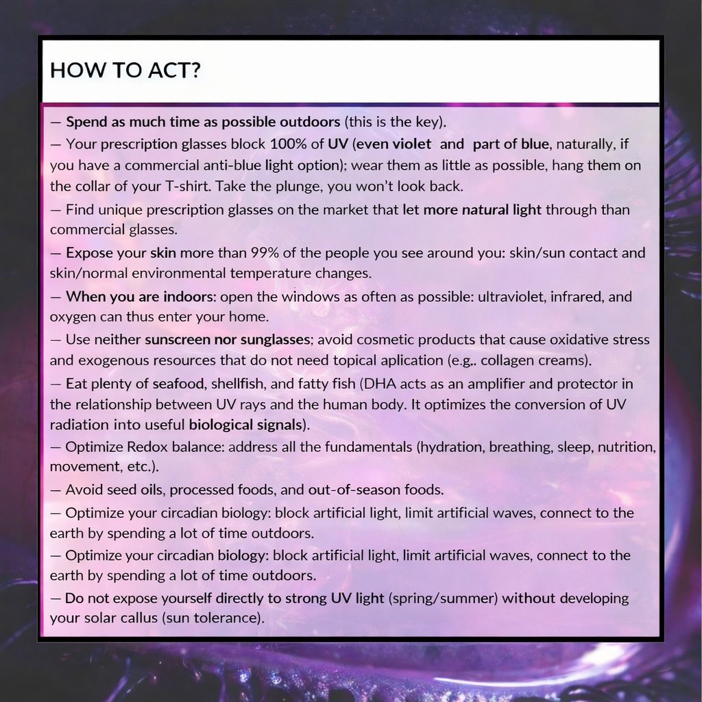 Deepen your knowledge about the scourge that encompasses the twenty-first century, fatigues the eyes and disrupts your circadian rhythm. To do this, you can download a list giving you access to 50 study summaries and scientific articles on the subject, as well as the ebook bringing together more than 750 studies indicating the impact of artificial blue light on our lives as natural beings.