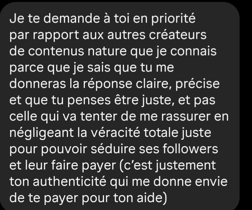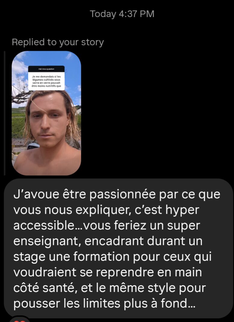 2. No bullshit-job : l’entreprise sert l’humain. Pas de tâches insensées, pas de manque de reconnaissance soit-disant générateur de performance (dans le salariat classique, on motive les employés en leur faisant comprendre qu’ils ne sont pas à la hauteur sans critique constructive), pas de caprices de chef & une équipe stable émotionnellement, pas de présentéisme, pas de ragots, équipe data-driven et nature-driven, c’est tout. On a réellement une mission : aider les gens à accomplir le destin qu’ils ont depuis la naissance mais qui a été brouillé par la société moderne. Ce destin, nécessairement utile à l’humain, nécessite un travail monumental qui est accompli par l’énergie que l’on redonne naturellement aux gens que l’on aide. Une énergie dont on doit faire preuve à chaque instant, chaque interaction avec n’importe quelle personne qui est en contact avec la marque.