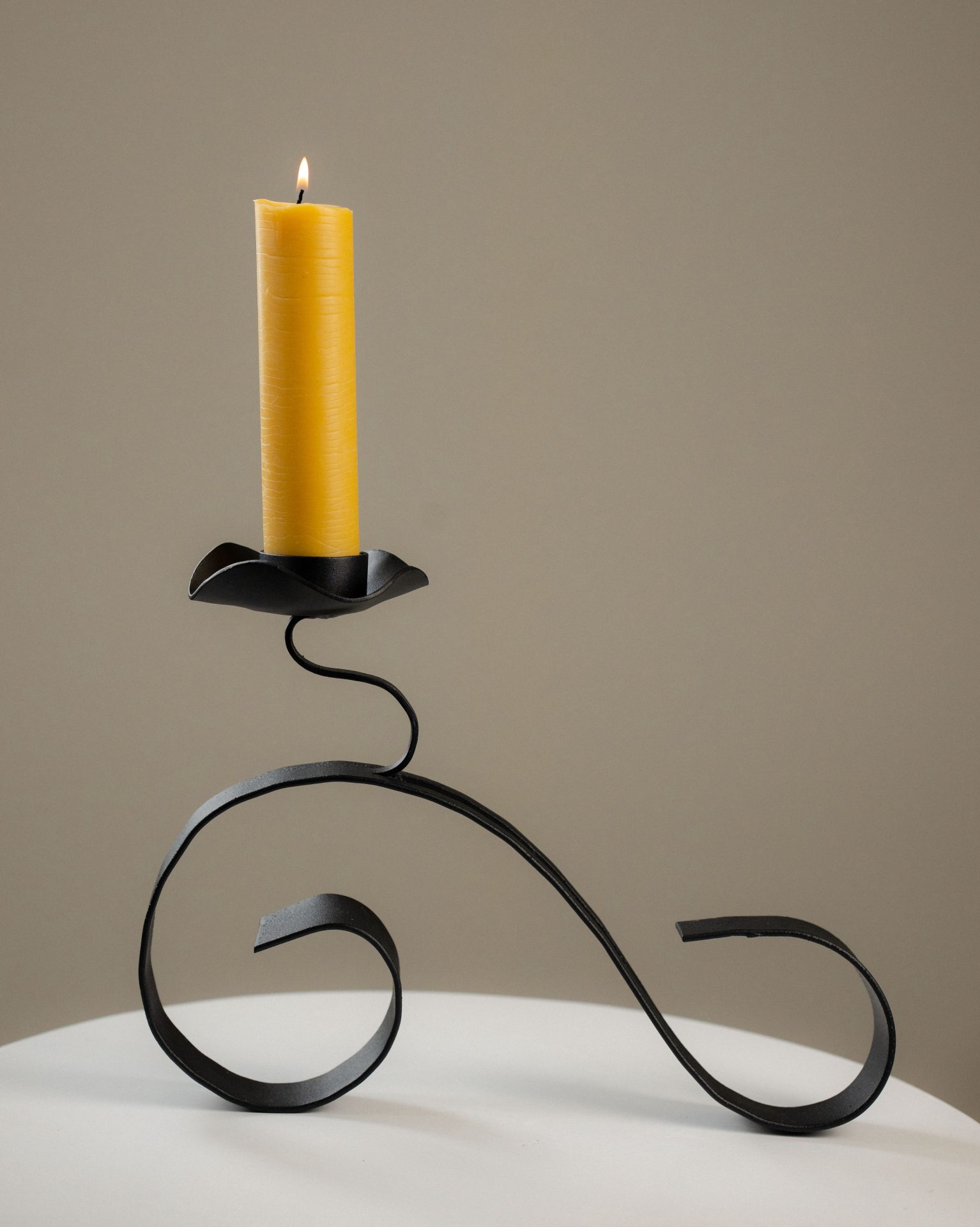 Forgé à la main en Géorgie, ce chandelier en fer est conçu comme un objet durable, sobre et vivant. Il accompagne la lumière, révèle la flamme et s’inscrit naturellement dans votre espace. Les courbes ne sont pas dessinées par une machine, elles naissent du geste.